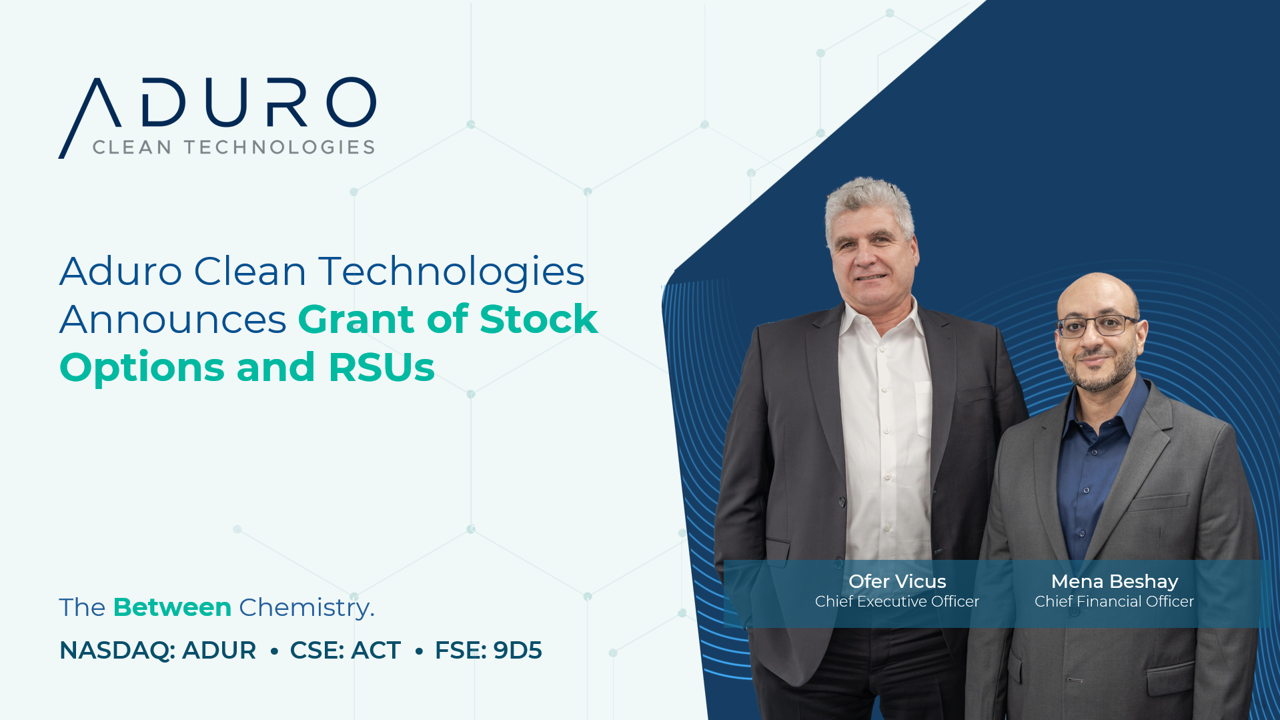 LONDON, Ontario, July 03, 2025 (GLOBE NEWSWIRE) — Aduro Clean Technologies Inc. (“Aduro” or the “Company”) (Nasdaq: ADUR) (CSE: ACT) (FSE: 9D5), a clean technology company using the power of chemistry to transform lower-value feedstocks, like waste plastics, heavy bitumen, and renewable oils, into resources for the 21st century, announces today that it has granted (the “Option Grant”) an aggregate of 743,500 stock options (each, an “Option”) to purchase up to 743,500 common shares of the Company to certain directors, officers, employees and consultants of the Company.