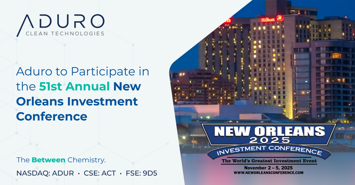 LONDON, Ontario, Oct. 14, 2025 (GLOBE NEWSWIRE) — Aduro Clean Technologies Inc. (“Aduro” or the “Company”) (Nasdaq: ADUR) (CSE: ACT) (FSE: 9D5), a clean technology company using the power of chemistry to transform lower-value feedstocks, like waste plastics, heavy bitumen, and renewable oils, into resources for the 21st century, today announced its participation in the 51stAnnual New Orleans Investment Conference as Gold Sponsor, taking place November 2–5, 2025.