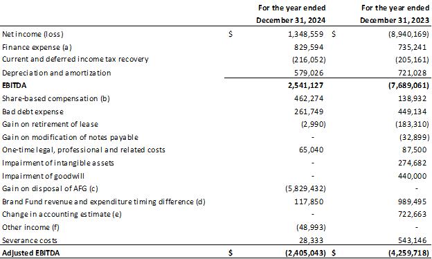 “Adjusted EBITDA” is comprised as income (loss) less interest, income tax, depreciation, amortization, share-based compensation, Brand Fund revenue and expense timing difference, change in fair value of warrant liability, foreign exchange gain (loss) and other income / expenses not attributable to the operations of the Company. Management believes that EBITDA is a useful indicator for investors, and is used by management, in evaluating the operating performance of the Company. See “Consolidated EBITDA and Adjusted EBITDA Reconciliation” appended to this press release for a quantitative reconciliation of Adjusted EBITDA to the most directly comparable financial measure.