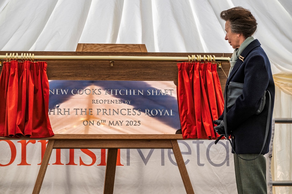 Figure 2: HRH The Princess Royal unveiling a plaque to re-open New Cook’s Kitchen Shaft