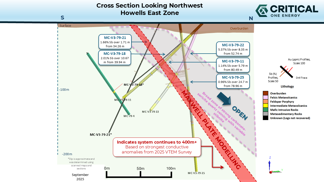 TORONTO, Oct. 01, 2025 (GLOBE NEWSWIRE) — Critical One Energy Inc. (formerly Madison Metals Inc.) (“Critical One” or the “Company”) (CSE: CRTL) (OTCQB: MMTLF) (FSE: 4EF0), a leading Canadian mining exploration company focused on critical metals and minerals, is pleased to announce that advanced geophysical and geological modelling has confirmed significant expansion potential of the antimony-gold deposit at its Howells Lake Antimony-Gold Project (“Howells Lake Project”). The results underscore the potential for increased resource estimates, which Critical One will work to confirm with further drilling. The Howells Lake Project is located approximately 200 kilometres (km) from the Ring of Fire corridor in the Thunder Bay Mining Division of Ontario, Canada.