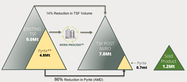 • an 86% reduction in acid mine draining potential by reducing pyrite content.