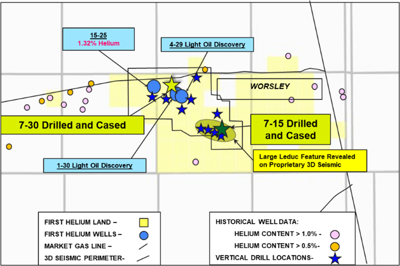 Building on its successful 15-25 helium discovery well, and 1-30 and 4-29 oil wells at the Worsley project, the Company has identified numerous follow-up drill locations and acquired an expansive infrastructure system to facilitate future exploration and development across its Worsley land base. Cash flow from its successful oil wells at Worsley has helped support First Helium’s ongoing exploration and development growth strategy. Further potential oil drilling locations have also been identified on the Company’s Worsley land base.
