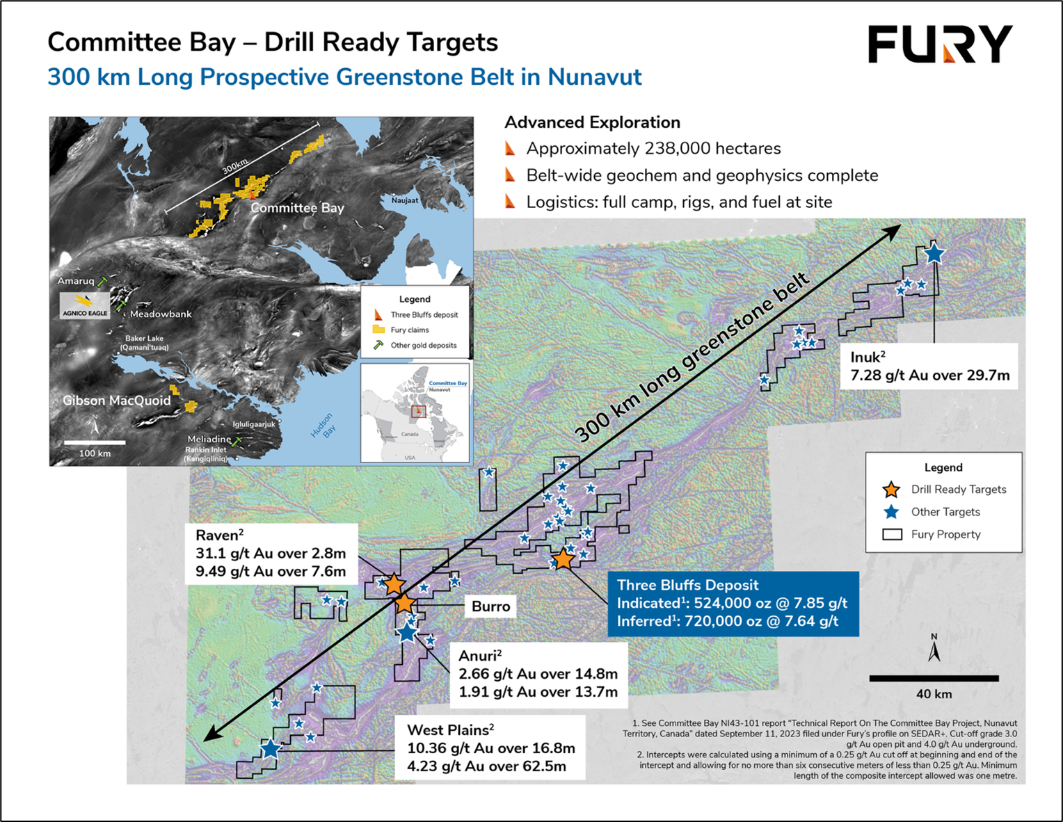 “Our 2025 exploration drilling in Nunavut successfully extended mineralization at Three Bluffs and validated the Raven Target. We are encouraged by the results encountered this year and believe that there is good potential to further expand the known gold zones at Committee Bay, which the Company will be evaluating with the aim of planning a future work program,” commented Tim Clark, CEO of Fury.