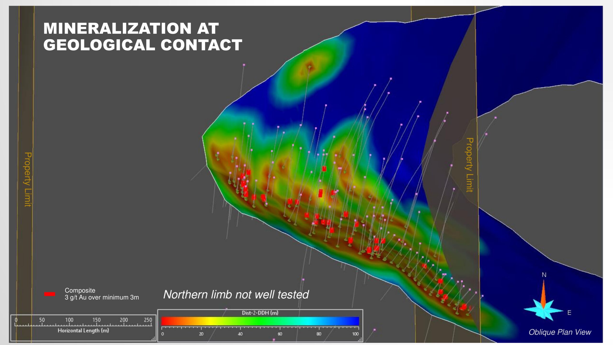 | Vein # 2 | Depth extension of an intercept of 6.10 g/t Au over 9.1m |