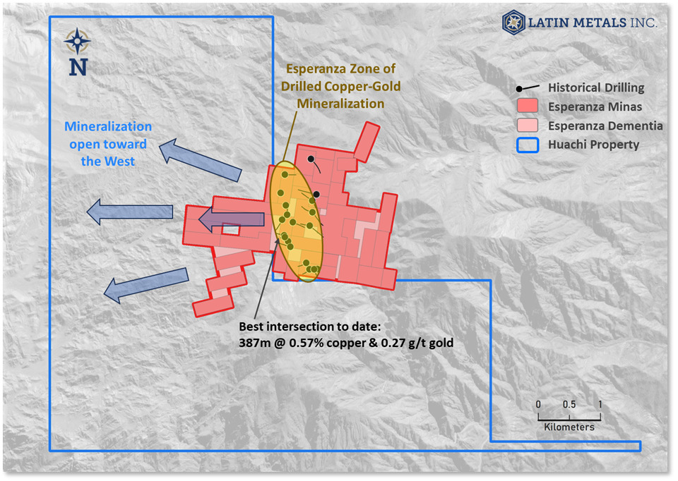 Latin Metals previously entered into an option agreement regarding the Esperanza and Huachi properties with Atlantic Metals Limited, a wholly owned subsidiary of Moxico Resources plc., a private copper mining company with producing and development assets in Zambia and the Kingdom of Saudi Arabia, made as of October 7, 2024 (see previous news release dated October 8, 2024)