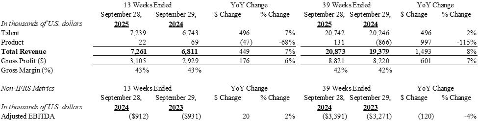 The following table outlines the consolidated statements of loss and comprehensive loss for the thirteen and thirty-nine weeks ended September 28, 2025 and September 29, 2024