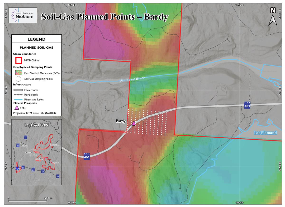Vancouver, British Columbia, Dec. 23, 2025 (GLOBE NEWSWIRE) — North America Niobium and Critical Minerals Corp. (CSE: NIOB) (FSE: IOR) (OTCQB: NIOMF) (“North American Niobium” or the “Company”) is pleased to announce that it has initiated a soil-gas survey at its Blanchette and Bardy projects in Québec. The survey is being conducted by RadonEx, an independent contractor and specialist geochemical services provider, and commenced on December 16, 2025. The program is currently ongoing.