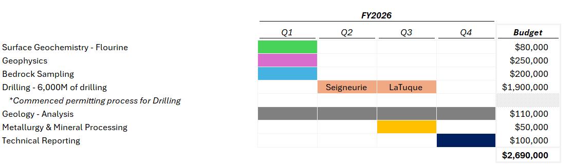 Geophysical Surveys – C$250,000 (To be Completed End of Q1’26)