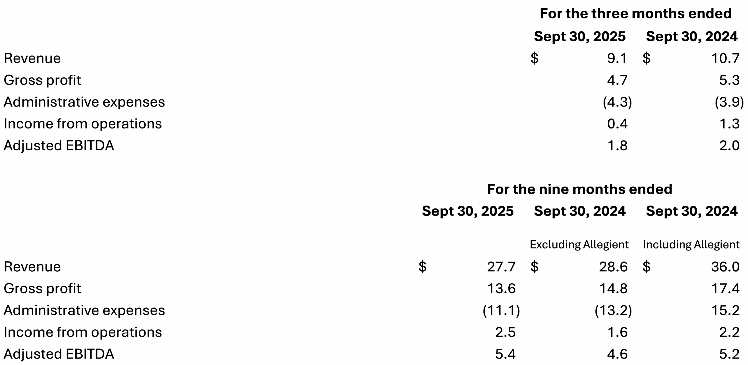 • Income from Operations was $0.4 million in Q3 2025, a 72% decrease from $1.3 million in Q3 2024 and was $2.5 million YTD 2025, a 55% increase from $1.6 million YTD 20241.