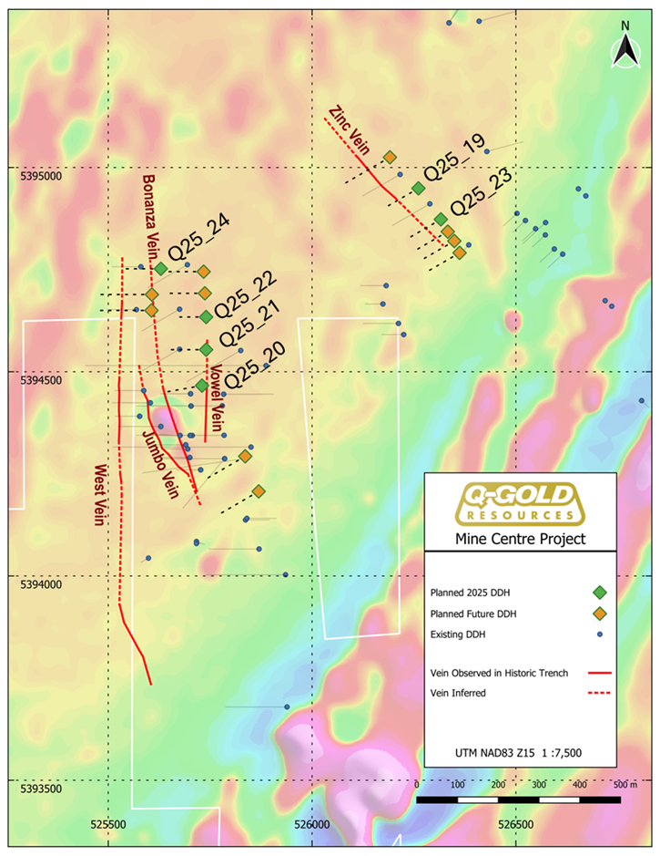TORONTO, July 14, 2025 (GLOBE NEWSWIRE) — Q-Gold Resources Ltd. (TSXV: QGR) (“Q-Gold” or the “Company”) is pleased to report the successful completion of its Phase 3 diamond drilling program at the historic Foley Shaft, part of its Mine Centre Project in northwestern Ontario (Fig. 1). The drillholes successfully intersected the anticipated auriferous quartz veins and highlights include: