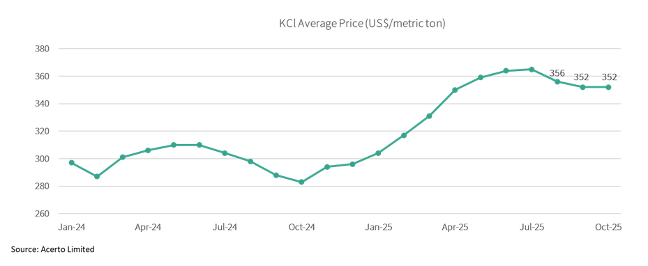 Figure 1: Average potassium chloride (KCl) prices per metric ton