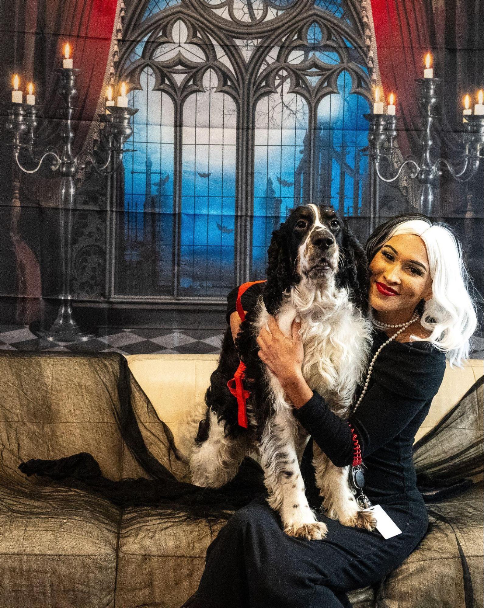 Cruella and her “paw-some” sidekick show off their spooktacular look at Wag Hotels’ Haunted Howl-o-ween Party.